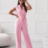 Ολόσωμη φόρμα αμάνικη με κλασικό γιακά και κουμπιά τρουκς. Διαθέτει διακοσμητικά τρουκς στα μανίκια, φερμουάρ μπροστά και λάστιχο με ενσωματωμένη ζώνη στη μέση.